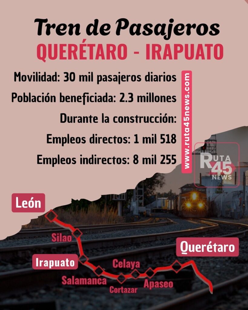 Es decir: una línea pensada justo para quienes viven y trabajan en el corredor industrial más dinámico del país, y según las estimaciones, llegar de Apaseo el Grande hasta Irapuato de forma directa y sin escalas, tardaría sólo 25 minutos.