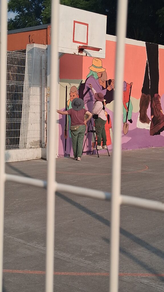 El mural también refleja la solidaridad interna: mujeres que se sostienen entre sí, que encuentran en el acompañamiento mutuo la esperanza para seguir adelante.