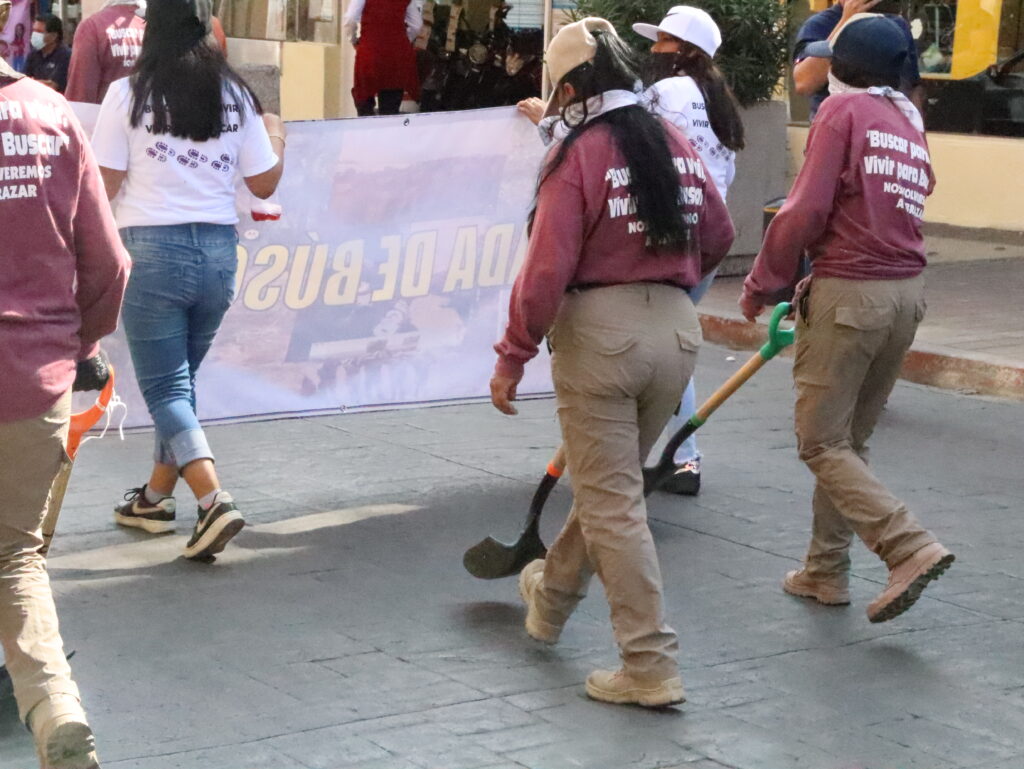 En este contexto, el papel de las familias —principalmente mujeres— ha sido fundamental. Son ellas quienes, armadas con palas, varillas y botas, recorren terrenos baldíos, montes y sembradíos en busca de pistas, y con sus manos excarvan en la tierra para rescatar los restos de sus seres queridos.