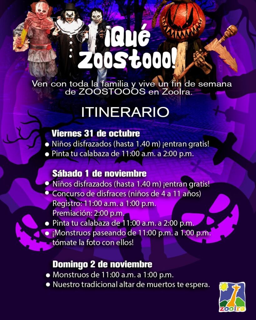 El Zoológico de Irapuato celebrará un “fin de semana naturalmente espeluznante” del 31 de octubre al 2 de noviembre con entrada gratuita para niños disfrazados, talleres de calabazas, recorridos con monstruos y un concurso de disfraces con premios como un XBOX One, Nintendo Switch Lite y una tablet.