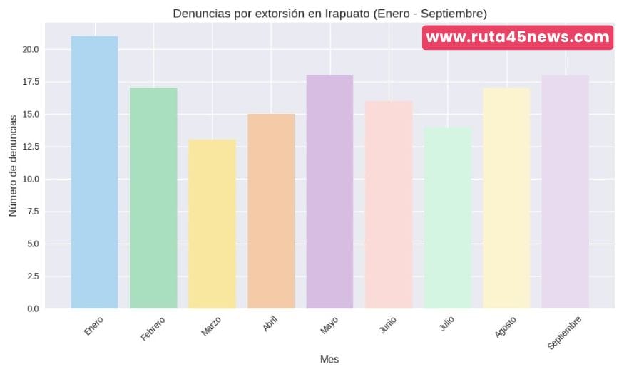 El mismo reporte indica que el incremento sostenido de casos ha sido uno de los principales retos de seguridad en el municipio durante 2025. Irapuato concentra cerca del 19 % de todas las denuncias de extorsión registradas en el estado, según los datos del Secretariado Ejecutivo del Sistema Nacional de Seguridad Pública (SESNSP).